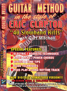 Learn to play guitar in the style of Eric Clapton with this instructional DVD hosted by Curt Mitchell, a respected guitarist's guitarist. Besides an acclaimed playing, recording, composing, and touring career with Razormaid and Bangalore Choir among others, Curt has been dedicated to guiding new guitarists with over 50 MVP videos and DVDs. These guitar lessons have garnered many "best new guitar instructional product" awards and are certain to help you play guitar in the style of your favorite artists, and discover