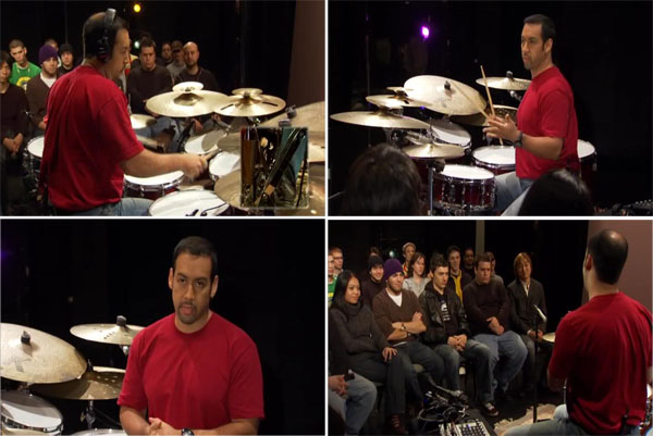 In an intimate master-class setting, Antonio Sanchez displays his extraordinary musical skills in the context of challenging songs and incredible solo segments. Performing both on his smaller traditional jazz set, and the larger kit that he uses with the Pat Metheny Group, he presents musical concepts, exercises, and suggestions for developing musicianship that apply to serious drum students of all levels.
