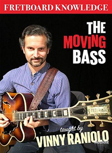 As guitarists, we have a variety of ways we can accompany. In this lesson Vinny Raniolo demonstrate ways you can utilize bass motion through chord progressions and songs to spark new ideas for your accompanying skills. Vinny discusses techniques such as two-beat and walking bass lines with each harmonic movement thoroughly explained and easy to understand. You'll be ready to take your accompanying skills to the next level and have the tools to improve your practice. A detailed tab/music booklet is included as a PDF file on the DVD. each tune is taught phrase by phrase and played slowly on a split-screen. Titles include: Avalon, It's Been a Long, Long Time, Ain't Misbehavin', Bflat Blues and Cheek to Cheek.