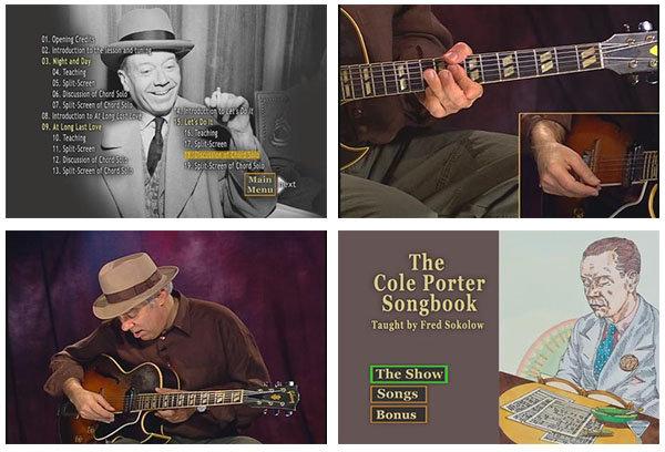 Cole Porter’s beautiful, witty songs have become timeless jazz standards, and they sound great on guitar. In this dvd, Fred plays and teaches six complete arrangements of Cole Porter gems, including guitar backup (for singing) and instrumental chord solos for each tune. Just for fun, Fred includes the rarely-heard introductory verses to three of the songs, as well as ad-lib instrumental solos.