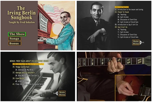 After playing each song, Fred gives you a run-down on the arrangement, going over tricky spots and analyzing the chord progression and substitutions. Then he replays it slower on a split-screen with close-ups of both hands. Best of all, you can read all six arrangements (tablature, music and chord grids) in the booklet that comes with this DVD.