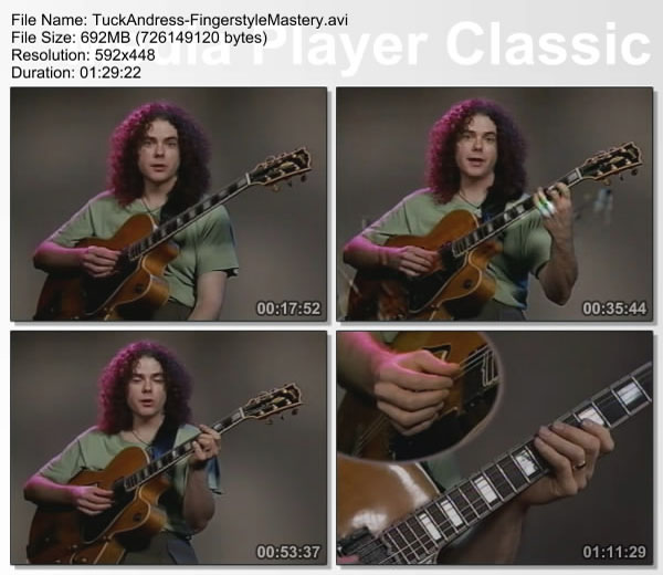 Tuck Andress is a master of fingerstyle guitar who now shares his subtle skills and techniques with you. Tuck gives in-depth demonstrations and explanations about every aspect of fingerstyle, including walking bass patterns combined with chords, comping rhythms, voicings, vibrato, sliding, leading with the melody, various right- and left-hand techniques